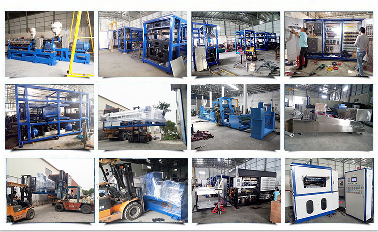 The machine is combined with pneumatic, mechanical and drive to achieve automatic continuous working of feeding sheet, forming, demoulding, ection cutting and stacking. Using PLC control system makes the machine working more reliable.